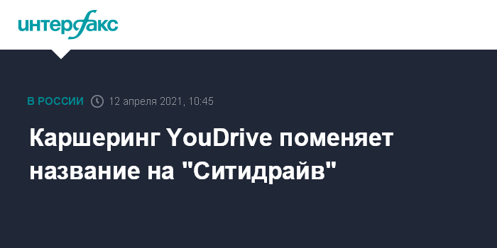 Москва. 12 апреля. INTERFAX.RU - Каршеринговый сервис YouDrive и такси-сервис "YouDrive", которые входят в СП Mail.ru Group и Сбербанка в сфере O2O, сообщили, что завершили интеграцию. В связи с этим YouDrive поменяет свое название на "СитиДрайв".