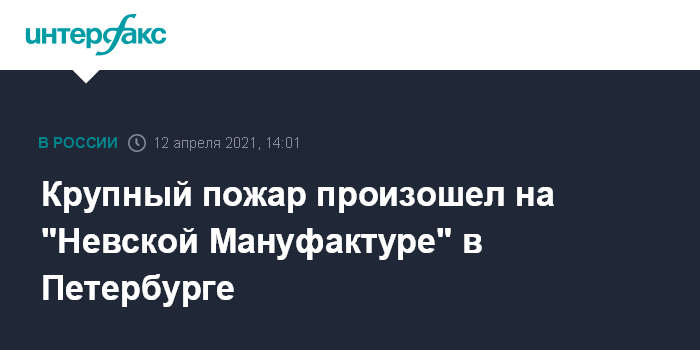 Крупный пожар произошел на "Невской Мануфактуре" в Петербурге
