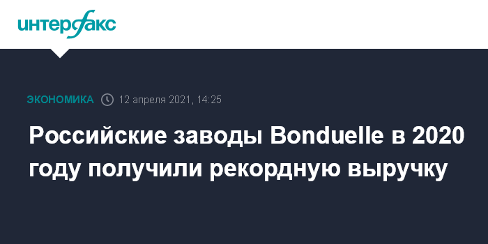 Москва. 12 апреля. INTERFAX.RU - Российские заводы группы Bonduelle завершили 2020 год с ростом финансовых показателей, несмотря на опасения на фоне распространения коронавирусной инфекции.