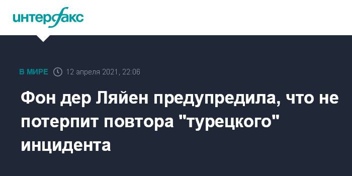 "Госпожа фон дер Ляйен ожидает отношения к себе согласно правилам протокола и просит свои службы сделать так, чтобы инциденты подобного рода не повторились в будущем", - заявил журналистам в Брюсселе официальный представитель Еврокомиссии Эрик Мамер.