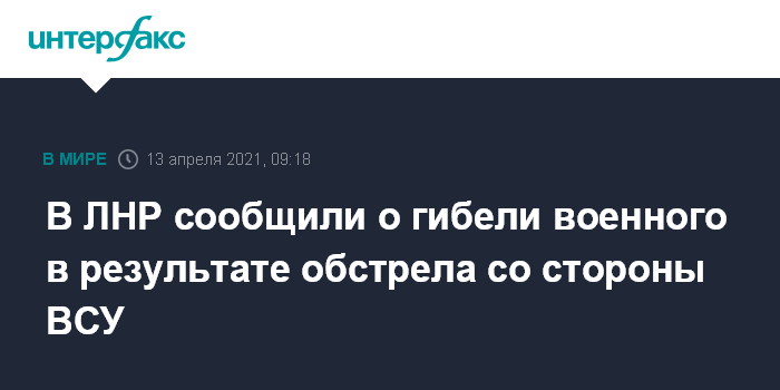 Москва. 13 апреля. INTERFAX.RU - Военнослужащий Народной милиции самопровозглашенной Луганской народной республики погиб в результате обстрела со стороны Вооруженных сил Украины (ВСУ) в районе населенного пункта Золотое-5 в Донбассе, сообщили "Интерфаксу" в представительстве ЛНР в Совместном центре по контролю и координации режима прекращения огня (СЦКК).