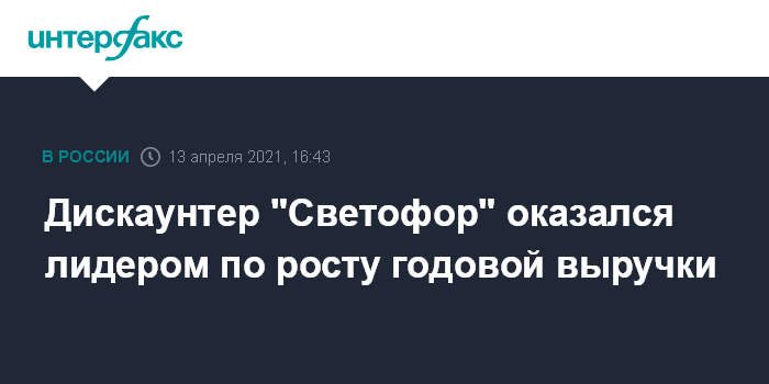 Сеть "жестких" дискаунтеров "Светофор" оказалась лидером по приросту продаж: ее выручка по итогам 2020 года выросла на 39%, до 188,7 млрд рублей.