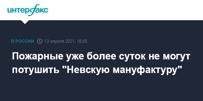 Москва. 13 апреля. INTERFAX.RU - Петербургские пожарные уже более суток не могут окончательно потушить завалы на месте сгоревшего производственно-складского здания АО "Невская мануфактура", сообщили "Интерфаксу" во вторник в пресс-службе управления МЧС по городу.