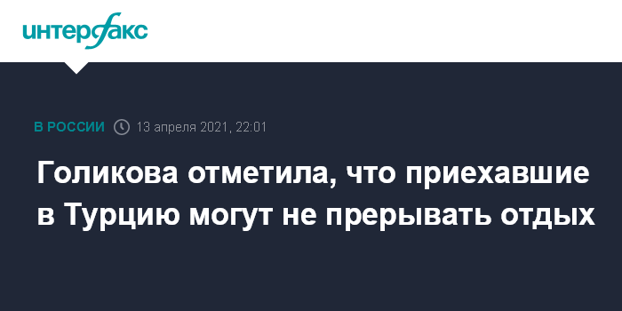 Москва. 13 апреля. INTERFAX.RU - Отдыхающие в настоящий момент в Турции россияне смогут закончить свой отдых там и потом вернуться домой, сообщила вице-премьер Татьяна Голикова.