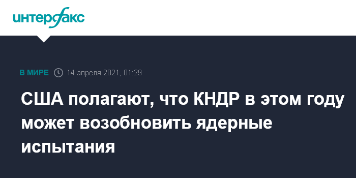 Москва. 14 апреля. INTERFAX.RU - Лидер КНДР Ким Чен Ын в течение этого года может возобновить испытания ядерного оружия или ракет большой дальности, чтобы оказать давление на США, говорится в докладе Нацразведки США.