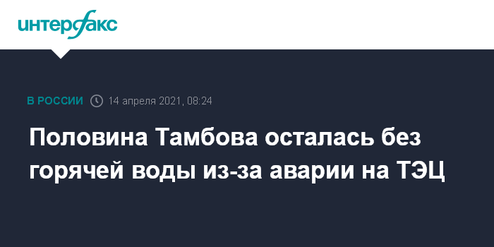 По ее словам, временно прекращена подача тепла и горячей воды жителям Тамбова в контуре ТЭЦ. "А это порядка 60% жителей города", - подчеркнула представитель "Квадры".