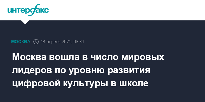 Москва. 14 апреля. INTERFAX.RU - Столичная система образования оказалась среди лидеров по уровню развития цифровой культуры в школе, следует из исследования международной компании BCG, специализирующейся на управленческом консалтинге.