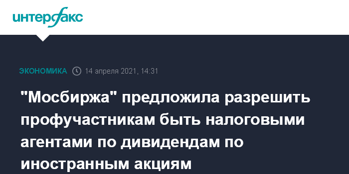 "Мосбиржа" предложила разрешить профучастникам быть налоговыми агентами по дивидендам по иностранным акциям