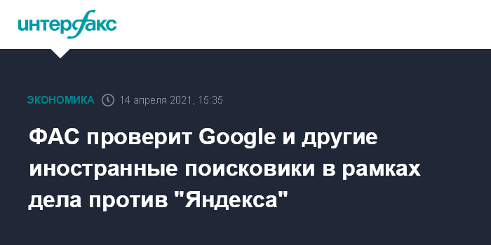 Москва. 14 апреля. INTERFAX.RU - Федеральная антимонопольная служба (ФАС) России проанализирует действия Google и других поисковиков в рамках дела "Яндекса" о продвижении сервисов в поисковой выдаче, сообщили "Интерфаксу" в пресс-службе регулятора