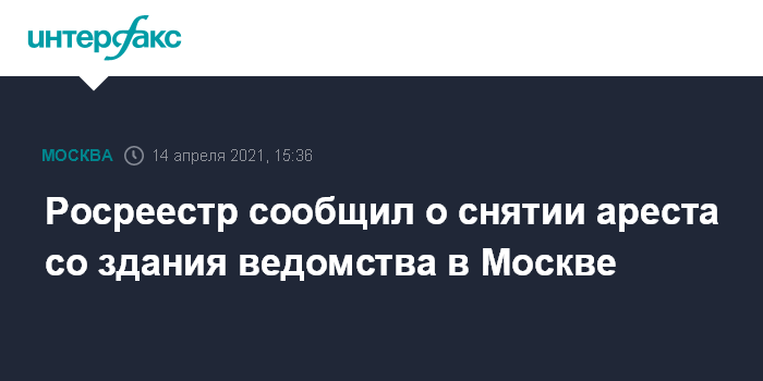 Росреестр сообщил о снятии ареста со здания ведомства в Москве