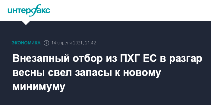 Таким образом, сезон отбора 2020-2021 годов, зафиксировав новый минимум, официально продлился до середины апреля. Он также перекрыл предыдущий рекорд за историю наблюдений GIE (ведется с 2011 года) - в 2013 году последним днем нетто-отбора было 12 апреля.