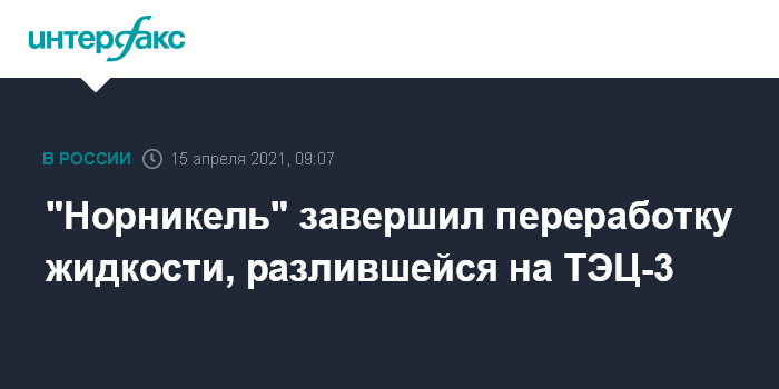 "Норникель" завершил переработку жидкости, разлившейся на ТЭЦ-3