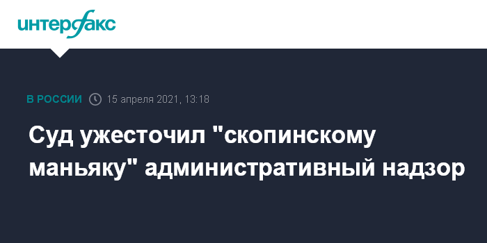 Решением суда "скопинский маньяк" был осужден на 17 лет. 3 марта текущего года он освободился из колонии и вернулся в свой дом в Скопине в Рязанской области. За ним установлен административный надзор сроком на шесть лет с рядом административных ограничений и обязанностью отмечаться в органах внутренних дел по месту жительства.