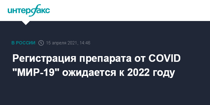 Регистрация препарата от COVID "МИР-19" ожидается к 2022 году