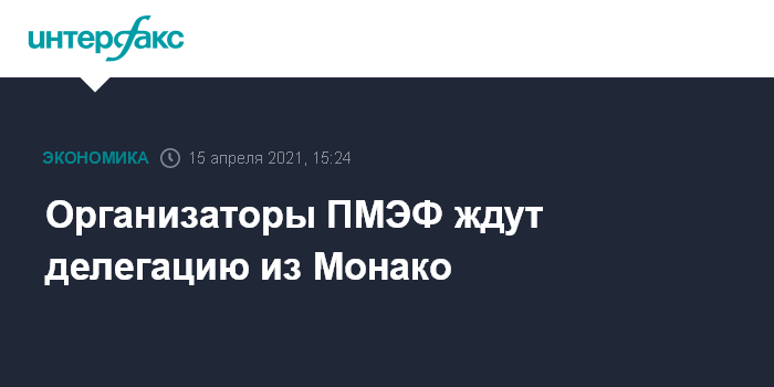 Москва. 15 апреля. INTERFAX.RU -Делегация княжества Монако примет участие в Петербургском международном экономическом форуме (ПМЭФ) в июне 2021 года, сообщил председатель петербургского регионального отделения и бизнес-посол "Деловой России" в Монако Дмитрий Панов. Он сказал это на церемонии награждения победителей регионального этапа конкурса "Экспортер года" в Петербурге.