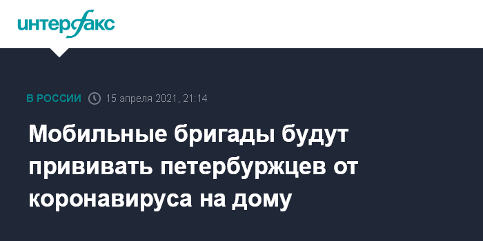 Москва. 15 апреля. INTERFAX.RU - Власти Петербурга завершают процедуру согласования с Роспотребнадзором для запуска вакцинации от коронавируса на дому. Об этом сообщил первый заместитель главы комитета по здравоохранению Андрей Сарана в четверг.