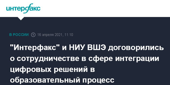 "Интерфакс" и НИУ ВШЭ договорились о сотрудничестве в сфере интеграции цифровых решений в образовательный процесс