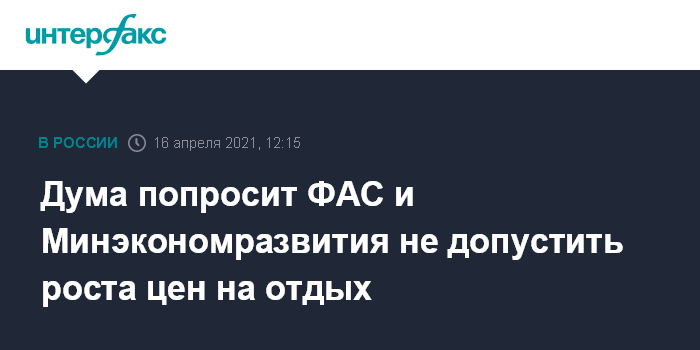 Дума попросит ФАС и Минэкономразвития не допустить роста цен на отдых