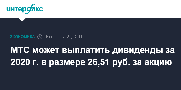 МТС может выплатить дивиденды за 2020 г. в размере 26,51 руб. за акцию