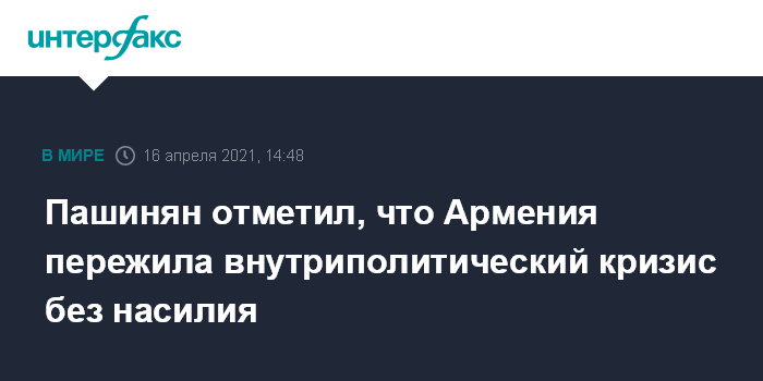 Москва. 16 апреля. INTERFAX.RU - Премьер-министр Армении Никол Пашинян считает, что страна выходит из внутриполитического кризиса.