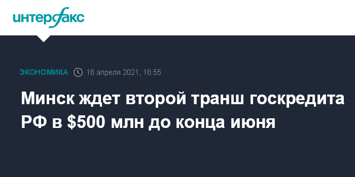 Как сообщалось, первый транш в сумме $500 млн поступил в Белоруссию в конце декабря 2020 года.