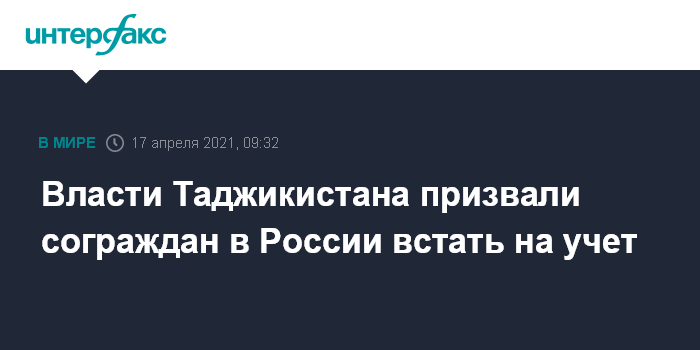 "Граждане Таджикистана, которые в настоящее время находятся на территории РФ, и по каким-то причинам не состоящие на миграционном учете, должны явиться в районные отделы по вопросам миграции по месту жительства (пребывания), зарегистрировать и продлить срок своего пребывания в России до 15 июня 2021 года, так как в случае не уведомления автоматически попадете в список лиц, въезд которым будет запрещен на территорию РФ", - говорится в обращении.