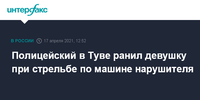 Предварительно установлено, что накануне днем в Барун-Хемчикском районе республики инспектор ДПС четыре раза выстрелил в автомобиль ВАЗ-2106, водитель которого не остановился по требованию полицейского. В результате была ранена 16-летняя жительница города Ак-Довурак. Ее здоровью ничто не угрожает.