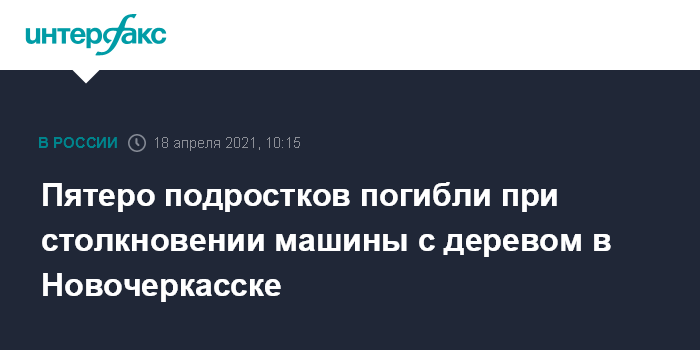 Пятеро подростков погибли при столкновении машины с деревом в Новочеркасске
