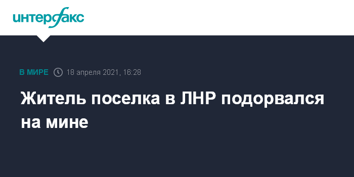 Москва. 18 апреля. INTERFAX.RU - Мирный житель населенного пункта Новокиевка, подконтрольного самопровозглашенной Луганской народной республике, подорвался на берегу реки Северский Донец, сообщил в воскресенье представитель Народной милиции ЛНР Яков Осадчий.
