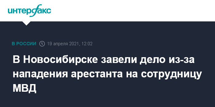 Москва. 19 апреля. INTERFAX.RU - Следователи возбудили уголовное дело после нападения арестованного на сотрудницу полиции у Центрального районного суда в Новосибирске в понедельник, сообщает следственное управление СКР по региону.