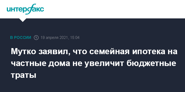 Москва. 19 апреля. INTERFAX.RU - Распространение программы "Семейная ипотека" на строительство частных домов не потребует дополнительных средств от государства, заявил в понедельник гендиректор ДОМ.РФ Виталий Мутко.