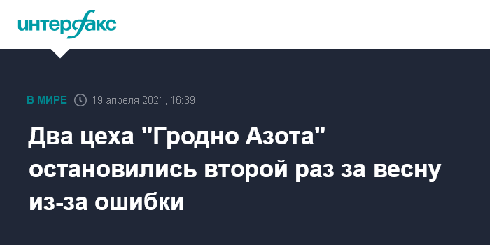 Два цеха "Гродно Азота" остановились второй раз за весну из-за ошибки