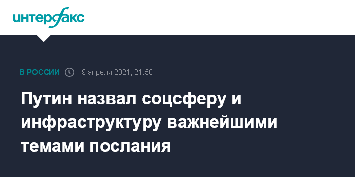 Как сообщалось, президент огласит послание Федеральному Собранию 21 апреля.