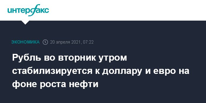 По мнению экспертов "Интерфакс-ЦЭА", стабилизация валютного курса рубля к доллару и евро на старте торгов 20 апреля связана с наметившимся накануне вечером и сохраняющимся ростом цен на нефть. Негативным фактором для национальной валюты по-прежнему остается санкционное противостояние между РФ и другими странами.