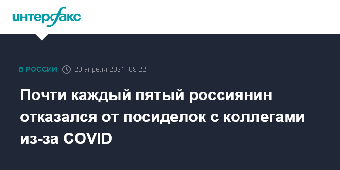 Почти каждый пятый россиянин отказался от посиделок с коллегами из-за COVID