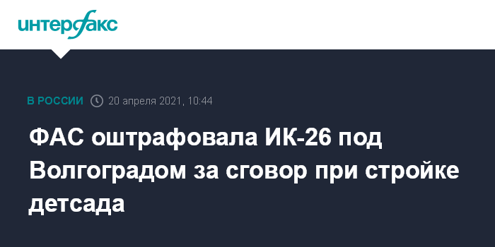 ФАС оштрафовала ИК-26 под Волгоградом за сговор при стройке детсада