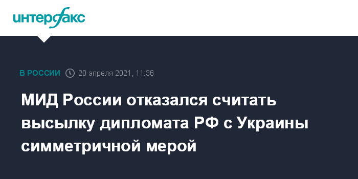 Москва. 20 апреля. INTERFAX.RU - Россия оставляет за собой право на ответные меры в связи с высылкой российского дипломата с Украины, заявили во вторник в МИД РФ.