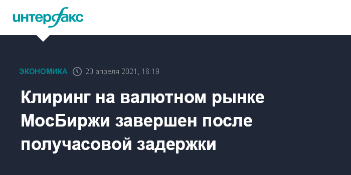 Клиринг на валютном рынке МосБиржи завершен после получасовой задержки