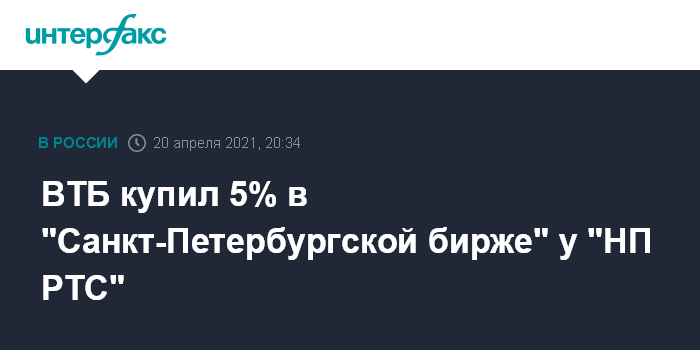 ВТБ купил 5% в "Санкт-Петербургской бирже" у "НП РТС"