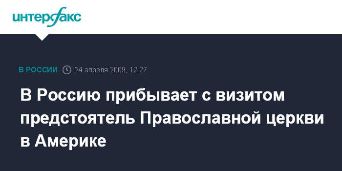В Россию прибывает с визитом предстоятель Православной церкви в Америке