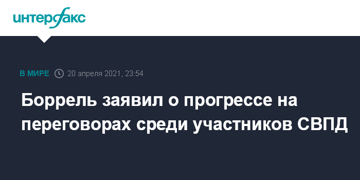 Москва. 20 апреля. INTERFAX.RU - Высокий представитель ЕС по иностранным делам Жозеп Боррель считает, что на переговорах в рамках Совместного всеобъемлющего плана действий (СВПД) в Вене есть прогресс.