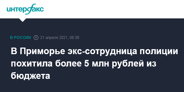 В Приморье экс-сотрудница полиции похитила более 5 млн рублей из бюджета