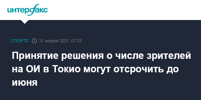 Москва. 21 апреля. INTERFAX.RU - Оргкомитет летних Олимпийских игр в Токио может отсрочить принятие решения о числе зрителей, допущенных на места проведения игр, до июня, сообщают местные СМИ.