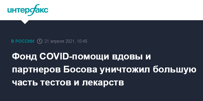 Фонд COVID-помощи вдовы и партнеров Босова уничтожил большую часть тестов и лекарств