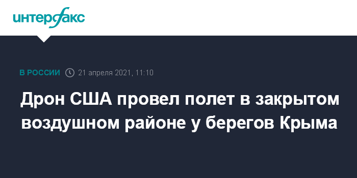 Москва. 21 апреля. INTERFAX.RU - Стратегический беспилотный летательный аппарат ВВС США RQ-4B Global Hawk в среду провел длительный разведывательный полет у берегов Крыма, где до 24 апреля введено ограничение на полеты воздушных судов, следует из данных западных авианаблюдателей.