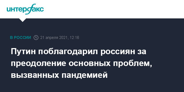 Путин поблагодарил россиян за преодоление основных проблем, вызванных пандемией