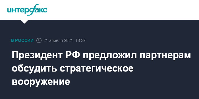 Москва. 21 апреля. INTERFAX.RU - Президент РФ Владимир Путин заявил, что Россия настоятельно предлагает зарубежным странам обсудить тему стратегического вооружения.