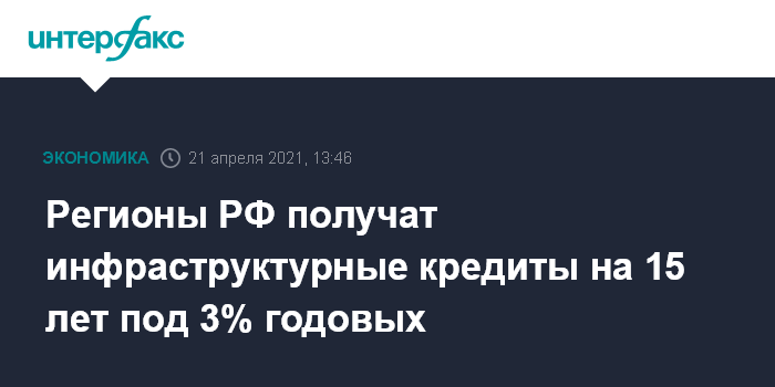 Регионы РФ получат инфраструктурные кредиты на 15 лет под 3% годовых