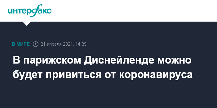 Москва. 21 апреля. INTERFAX.RU - В парижском Диснейленде в отеле Disney Newport Bay откроется пункт вакцинации от коронавируса, который будет работать только по выходным, подтвердила префектура департамента Сена и Марна. Об этом пишет Le Parisien.