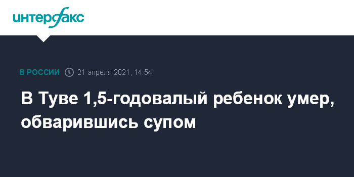 Москва. 21 апреля. INTERFAX.RU - Обстоятельства смерти полуторагодовалого ребенка, опрокинувшего на себя тарелку с супом, устанавливаются в Туве. Об этом сообщает в среду пресс-служба СУ СКР по региону.